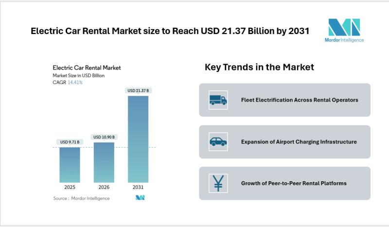 According to Mordor Intelligence, the electric car rental market size is projected to grow from USD 9.71 billion in 2025 to USD 10.90 billion in 2026, and further reach USD 21.37 billion by 2031, registering a CAGR of 14.41% during the forecast period. This market forecast highlights the increasing adoption of electric fleets by rental operators and the growing demand from both corporate and…