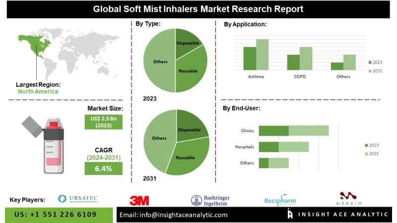 InsightAce Analytic Pvt. Ltd. announces the release of a market assessment report on the "Global Soft Mist Inhalers Market - (By Type (Disposable, Reusable), By Application (Asthma, COPD, Others), By Age Group (Adults, Pediatrics), By End-User (Hospitals, Clinics, Others)), Trends, Industry Competition Analysis, Revenue and Forecast To 2031."