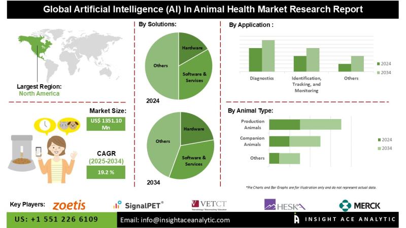 InsightAce Analytic Pvt. Ltd. announces the release of a market assessment report on the "Global Artificial Intelligence (AI) In Animal Health Market- (By Solution (Hardware, Software & Services), By Application (Diagnostics, Identification, Tracking, and Monitoring, Others), By Animal Type (Companion Animals, Production Animals)), Trends, Industry Competition Analysis, Revenue and Forecast To 2034."