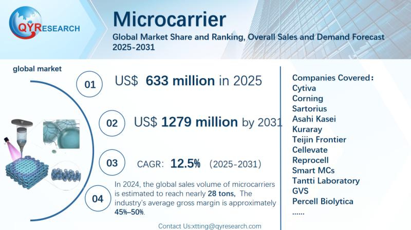 The global market for Microcarrier was estimated to be worth US$ 562 million in 2024 and is forecast to a readjusted size of US$ 1279 million by 2031 with a CAGR of 12.5% during the forecast period 2025-2031.