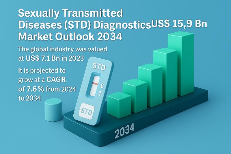 The global Sexually Transmitted Diseases (STD) Diagnostics Market is witnessing strong and sustained growth as the burden of sexually transmitted infections (STIs) continues to rise worldwide. According to recent industry assessments, the market-valued at US$ 7.1 billion in 2023-is projected to surpass US$ 15.9 billion by 2034, expanding at a notable CAGR of 7.6% from 2024 to 2034.