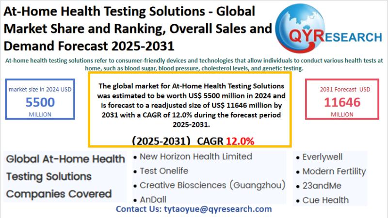 Global Leading Market Research Publisher QYResearch announces the release of its latest report "At-Home Health Testing Solutions - Global Market Share and Ranking, Overall Sales and Demand Forecast 2025-2031". Based…