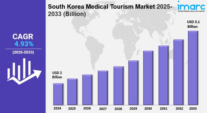 IMARC Group has recently released a new research study titled "South Korea Medical Tourism Market Report by Type (Outbound, Inbound, Intrabound) and Treatment Type (Cosmetic Treatment, Dental Treatment, Cardiovascular Treatment, Orthopedic Treatment, Bariatric Surgery, Infertility Treatment, Ophthalmic Treatment, Others) 2025-2033", offers a detailed analysis of the market drivers, segmentation, growth opportunities, trends and competitive landscape to understand the current and future market scenarios.