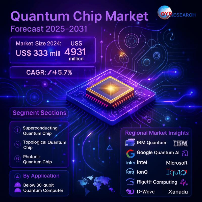 The global market for Quantum Chip was estimated to be worth US$ 333 million in 2024 and is forecast to a readjusted size of US$ 4931 million by 2031 with a CAGR of 45.7% during the forecast period 2025-2031.