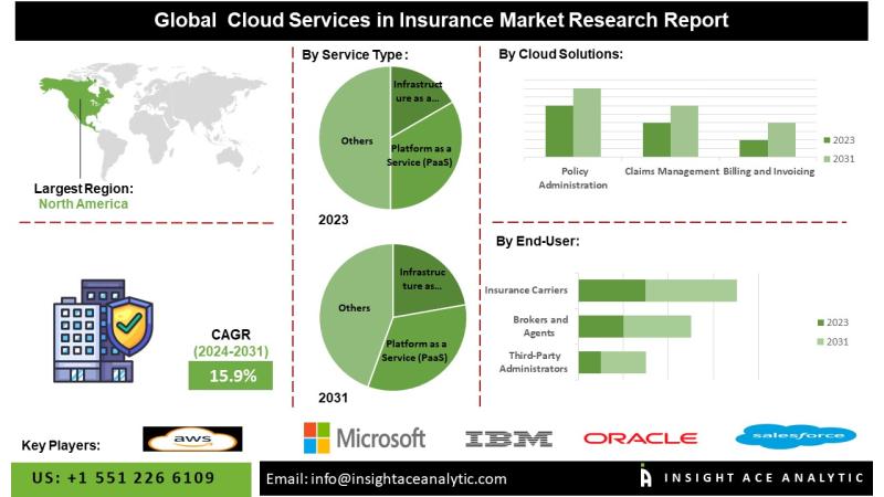 InsightAce Analytic Pvt. Ltd. announces the release of a market assessment report on the "Global Cloud Services in Insurance Market - (By Service Type (Infrastructure as a Service (IaaS), Platform as a Service (PaaS), and Software as a Service (SaaS)), By Cloud Solutions (Policy Administration, Claims Management, Billing and Invoicing, Customer Relationship Management (CRM), and Risk Management), By End User (Insurance Carriers, Brokers and Agents, and Third-Party Administrators)), Trends, Industry…
