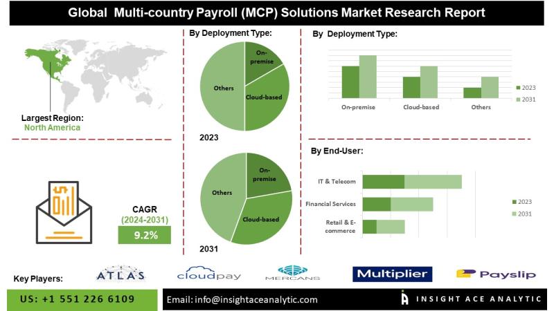 InsightAce Analytic Pvt. Ltd. announces the release of a market assessment report on the "Global Multi-country Payroll (MCP) Solutions Market- (By Deployment Type (On-premise and Cloud-based), By End-use Industry (IT & Telecom, Financial Services, Retail & E-commerce, Healthcare, Manufacturing, and Others)) Trends, Industry Competition Analysis, Revenue and Forecast To 2031."According to the latest research by InsightAce Analytic, the Global Multi-country Payroll (MCP) Solutions Market is expected to grow with a CAGR of 9.2% during the forecast period of 2024-2031.