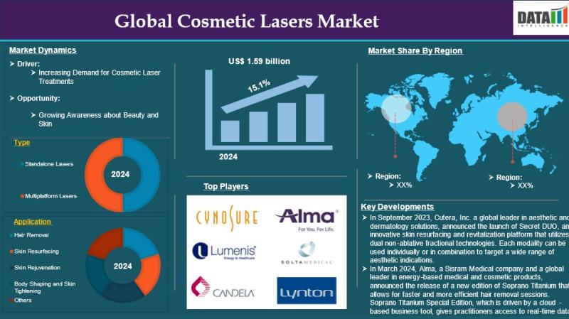 The Global Cosmetic Lasers Market reached US$ 1.59 billion in 2024 and is projected to grow to US$ 5.28 billion by 2033, registering a CAGR of 15.1 percent during the forecast period 2025-2033. Market growth is driven by rising demand for minimally invasive aesthetic procedures, expanding medical tourism and continuous advancements in laser-based technologies. Improved device precision, enhanced safety profiles and the availability of multi-functional platforms are further accelerating adoption…