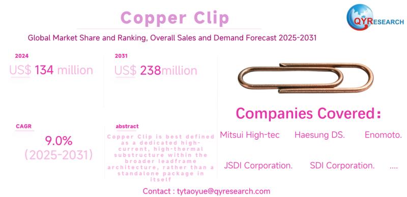 Global leading market research publisher QYResearch published the release of its latest report, "Copper Clip - Global Market Share, Ranking, Sales, and Demand Forecast 2025-2031". This in-depth report provides a complete analysis of the global Copper Clip market, offering critical insights into market size, share, demand, industry development status, and future forecasts. Whether you're a stakeholder, investor, or…