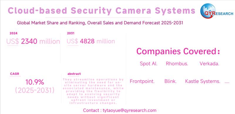 Unlock the Future of the Cloud-based Security Camera Systems Market: Comprehensive Global Market Report 2025-2031Global leading market research publisher QYResearch published the release of its latest report, "Cloud-based Security Camera Systems - Global Market Share, Ranking, Sales, and Demand Forecast 2025-2031". This in-depth report provides a complete analysis of the global Cloud-based Security Camera Systems market, offering critical insights into market size, share, demand, industry development status, and future forecasts. Whether you're a stakeholder, investor, or industry player, this report equips you with the data and strategies needed to stay ahead in a rapidly evolving market.