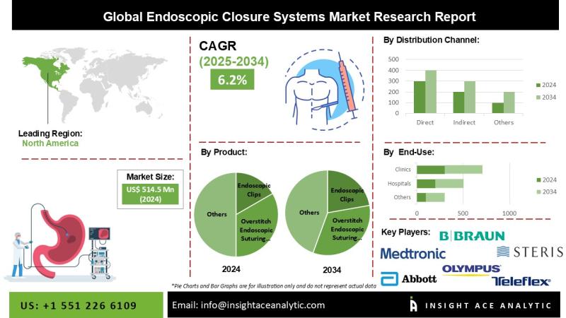 According to a new report by InsightAce Analytic, the "Endoscopic Closure System Market" in terms of revenue was estimated to be worth $ 514.5 Million in 2024 and is poised to reach $ 929.9 Million by 2034, growing at a CAGR of 6.2% from 2025 to 2034.