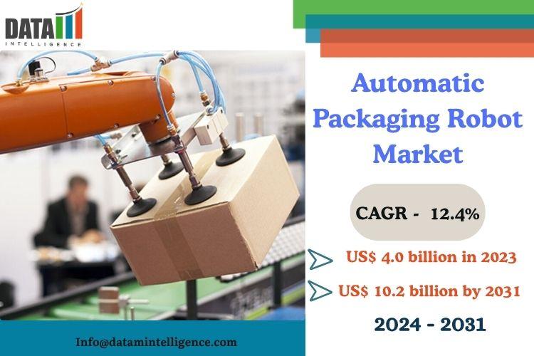 Global Automatic Packaging Robot Market reached US$ 4.0 billion in 2023 and is expected to reach US$ 10.2 billion by 2031, growing with a CAGR of 12.4% during the forecast period 2024-2031.