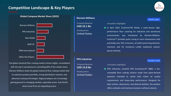 Akzo Nobel and Axalta - in November 2025 - formally agreed to merge in an all‐stock deal, creating a global coatings giant. This consolidation could influence how industrial and protective coatings are marketed, distributed and priced in APAC over the next few years.Get the Complete Industry Insights (TOC, Figures, Tables)- Industrial Floor Coating Market Report 2025-2035: https://marketgenics.co/reports/industrial-floor-coating-market-99693