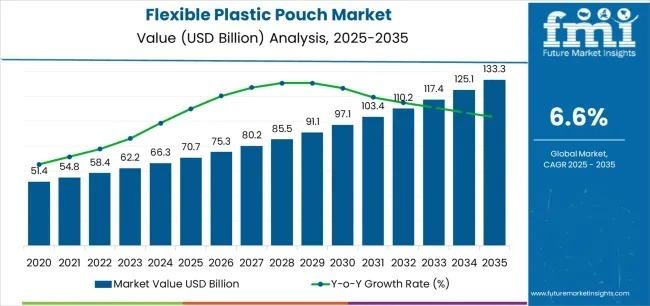 The global packaging industry is undergoing a major transformation driven by the demand for sustainability, convenience, and cost efficiency. Among the top-performing segments, the Flexible Plastic Pouch Market stands out as a true innovator. Valued at USD 70.7 billion in 2025, this market is projected to nearly double to USD 133.3 billion by 2035, expanding at a CAGR of 6.6%.