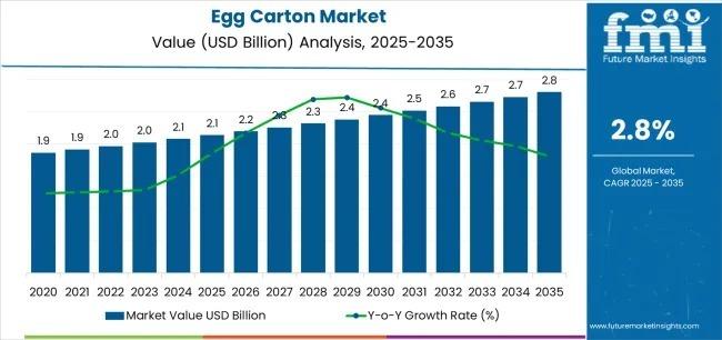 The global egg carton market, valued at USD 2.1 billion in 2025, is projected to reach USD 2.8 billion by 2035, registering a CAGR of 2.8% during the forecast period, according to the latest industry insights. Market growth is driven by rising egg consumption, expanding poultry production, and an accelerating transition toward eco-friendly packaging materials.
