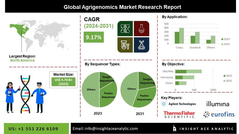 InsightAce Analytic Pvt. Ltd. announces the release of a market assessment report on the "Global Agrigenomics Market- by Sequencer Types (Sanger Sequencing, Illumina hi Seq Family, Pacbio Sequencers, Solid Sequencers, and Other Sequencer Types), Objectives (DNA Extraction & Purification, DNA/RNA Sequencing, Genotyping, Gene Expression Profiling, Marker-assisted Selection, GMO/Trait Purity Testing, and Other Objectives), Application (Crops and Livestock), Trends, Industry Competition Analysis, Revenue and Forecast To 2034."