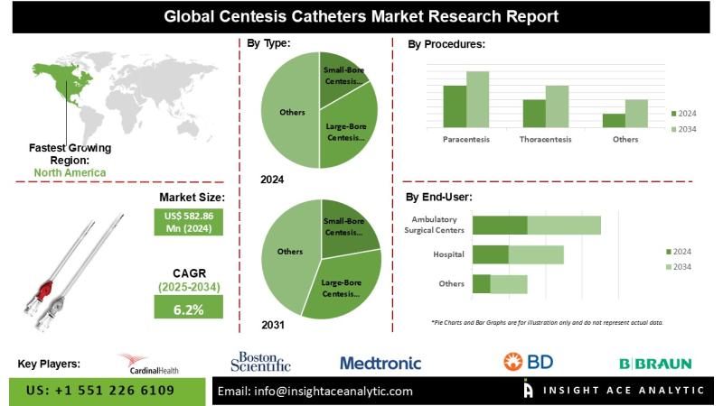 InsightAce Analytic Pvt. Ltd. announces the release of a market assessment report on the "Global Centesis Catheters Market Size, Share & Trends Analysis Report By Type (Small-Bore Centesis Catheters and Large-Bore Centesis Catheters), By Procedure (Paracentesis, Thoracentesis, Arthrocentesis, and Amniocentesis), By Application (Diagnostic, Therapeutic, and Palliative Care), By End-User (Hospitals, Ambulatory Surgical Centers)- Market Outlook And Industry Analysis 2034"