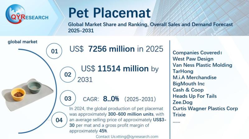Global Leading Market Research Publisher QYResearch announces the release of its latest report "Pet Placemat - Global Market Share and Ranking, Overall Sales and Demand Forecast 2025-2031". Based on current situation and…