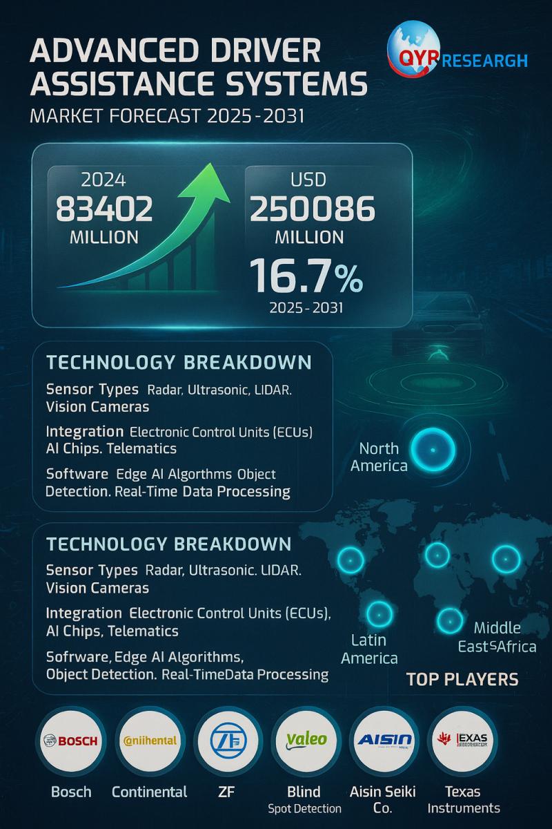 The global market for Advanced Driver Assistance Systems (ADAS) was estimated to be worth US$ 83402 million in 2024 and is forecast to a readjusted size of US$ 250086 million by 2031 with a CAGR of 16.7% during the forecast period 2025-2031.