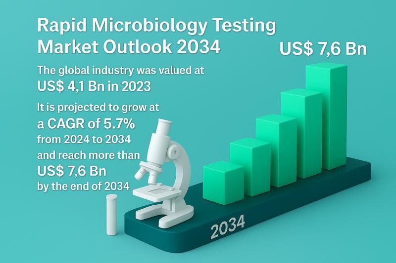 The global Rapid Microbiology Testing Market continues its growth trajectory, driven by rising demand for faster, accurate microbial detection across healthcare, food safety, and pharmaceutical manufacturing sectors. According to the latest industry analysis, the market was valued at US$ 4.1 billion in 2023 and is projected to exceed US$ 7.6 billion by 2034, registering a CAGR of 5.7% between 2024 and 2034.As the global burden of infectious diseases grows and industries prioritize quality assurance, rapid microbiological testing technologies are emerging as a critical component of modern diagnostics and industrial monitoring workflows.