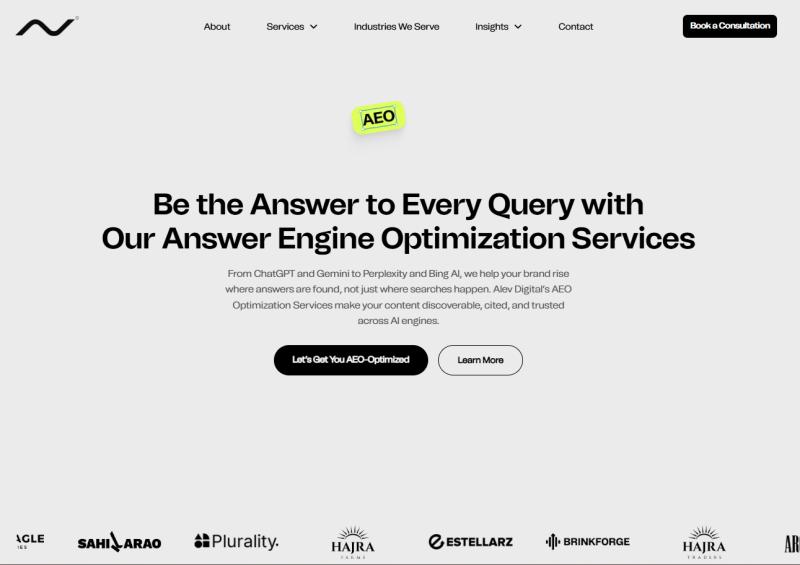 Checkout Alev Digital's AEO Services here: https://alevdigital.com/services/answer-engine-optimization-services/