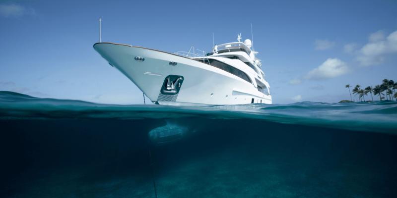 A superyacht anchored in blue tropical waters, symbolising the freedom, privacy, and refined elegance of crewed yacht charters.