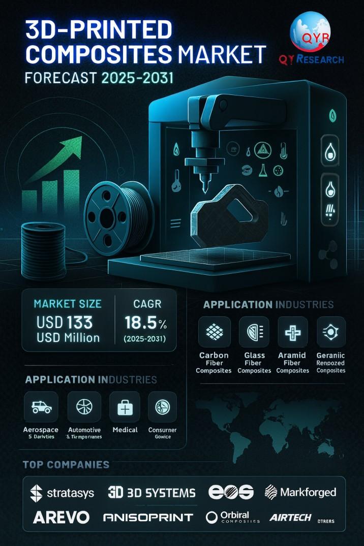 The global market for 3D-Printed Composites was estimated to be worth US$ 133 million in 2024 and is forecast to a readjusted size of US$ 430 million by 2031 with a CAGR of 18.5% during the forecast period 2025-2031.