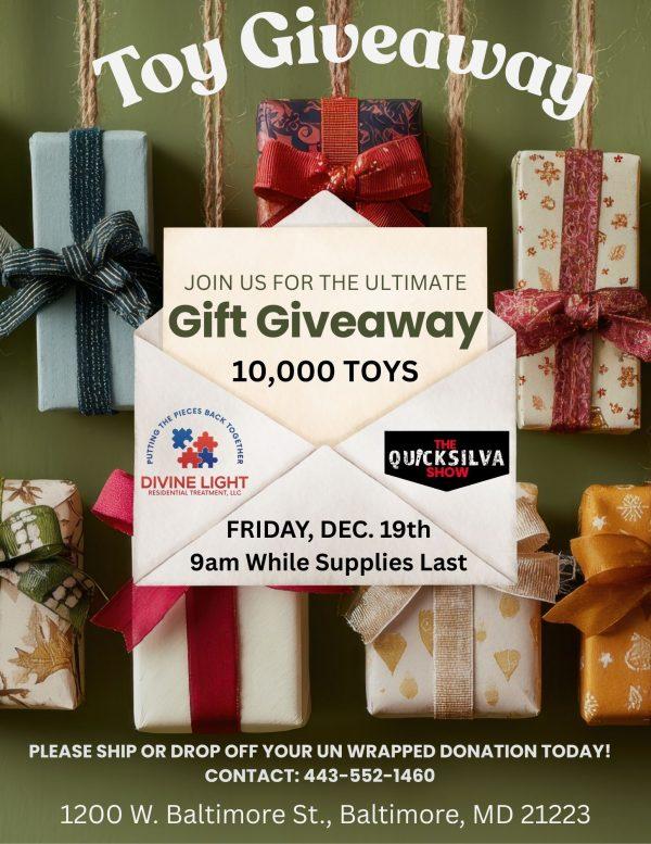 Baltimore, MD - Divine Light Behavioral Health, led by Founder & CEO Sakina Dean, is proud to announce a major partnership with Baltimore's Own Q92 DJ QuickSilva to host one of the largest Holiday Toy Giveaways in the City of Baltimore. Together, they have launched an ambitious 10K Toy Giveaway designed to ensure thousands of children across Baltimore receive gifts this Christmas season.