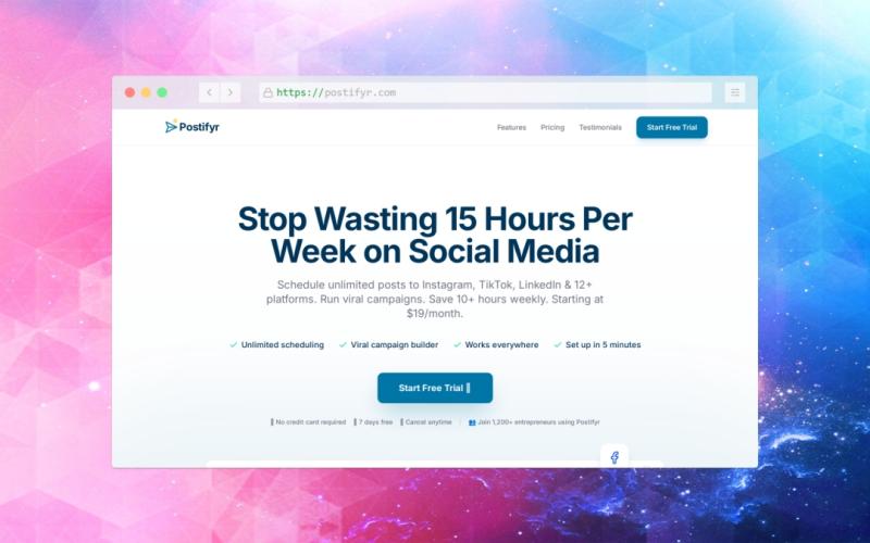 Postifyr helps you reclaim your time by automating your entire social media workflow - from scheduling to viral campaigns - starting at just $19/month.