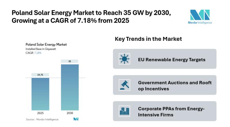 Poland Solar Energy Market to Reach 35 GW by 2030, Driven by Utility Auctions, Rooftop Incentives, and Corporate PPAs | Mordor Intelligence