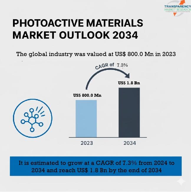 The global photoactive materials market is entering a decade of accelerated growth as industries increasingly adopt light-responsive materials for applications spanning solar energy, electronics, photomedicine, environmental remediation, and intelligent consumer products. Valued at US$ 800.0 Mn in 2023, the market is projected to expand at a CAGR of 7.3% between 2024 and 2034, ultimately reaching US$ 1.8 Bn by 2034. This rapid rise is driven by breakthroughs in photovoltaic technologies, smart coatings, photocatalysts, biomedical photonics, and the rise of sustainable, energy-harvesting systems needed in a decarbonizing global economy.Dive Deeper into Data: Get Your In-Depth Sample Now!