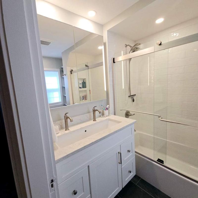 Bathroom remodeling and painting: Converting outdated baths into more functional, modern spaces with upgraded tile, fixtures, ventilation, and coordinated paint schemes.