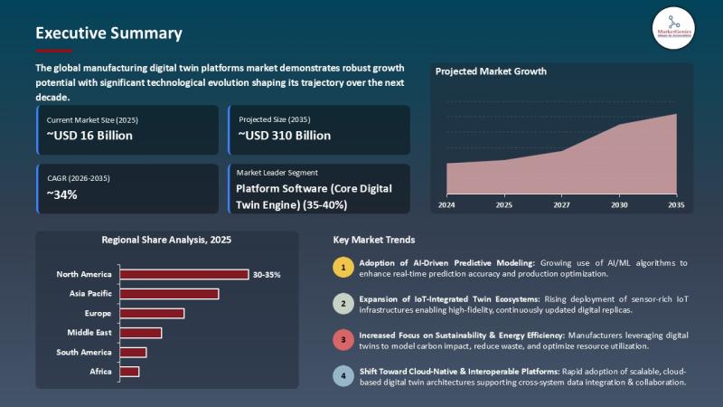 The global Manufacturing Digital Twin Platforms Market is valued at USD 16.4 billion in 2025 and is projected to reach USD 309.6 billion by 2035, growing at a blistering 34.1% CAGR as factories move from static dashboards to live, simulation-driven operational control.