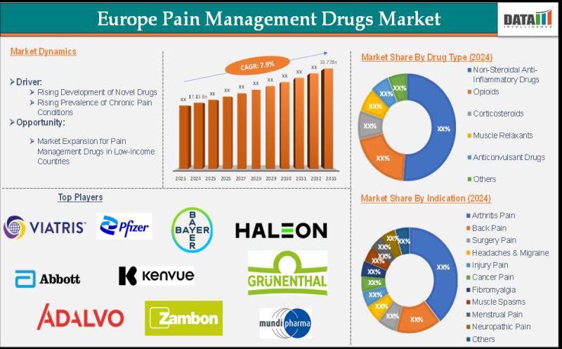 As per DataM intelligence research report" The Europe pain management drugs market reached US$ 17.13 billion in 2024 and is expected to reach US$ 33.77 billion by 2033, growing at a CAGR of 7.9% during the forecast period of 2025-2033." Aging populations and chronic disease prevalence continue to expand the pain management drug market.