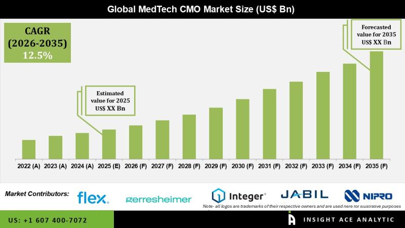 InsightAce Analytic Pvt. Ltd. announces the release of a market assessment report on the "Global MedTech CMO Market Size, Share & Trends Analysis Report By Product and Services (Design, Manufacturing, Sterilization and Packaging, Others), Manufacturing Techniques (Injection Molding, Cutting and Machining, Extrusion, Blow Molding, Others), End-users (Drug Delivery Devices, Orthopedics, MIS, Surgical Instruments, IVD, Electromechanical, Medical Equipment, Others)- Market Outlook And Industry Analysis 2035"