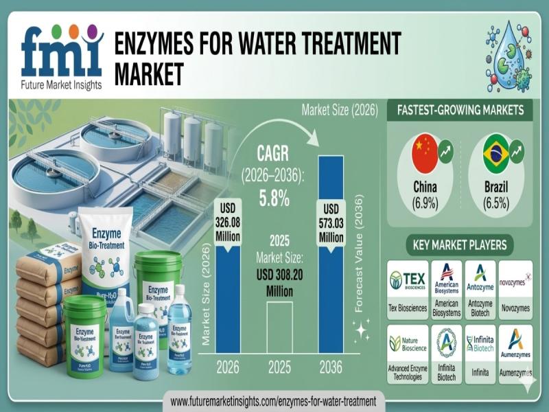 The global enzymes for water treatment market is entering a steady growth phase as industries and municipalities transition toward sustainable and cost-efficient wastewater management systems. According to the latest analysis, the market is valued at USD 326.08 million in 2026 and is projected to reach USD 573.03 million by 2036, expanding at a CAGR of 5.8%. The sector is expected to generate an incremental opportunity of USD 246.95 million over…