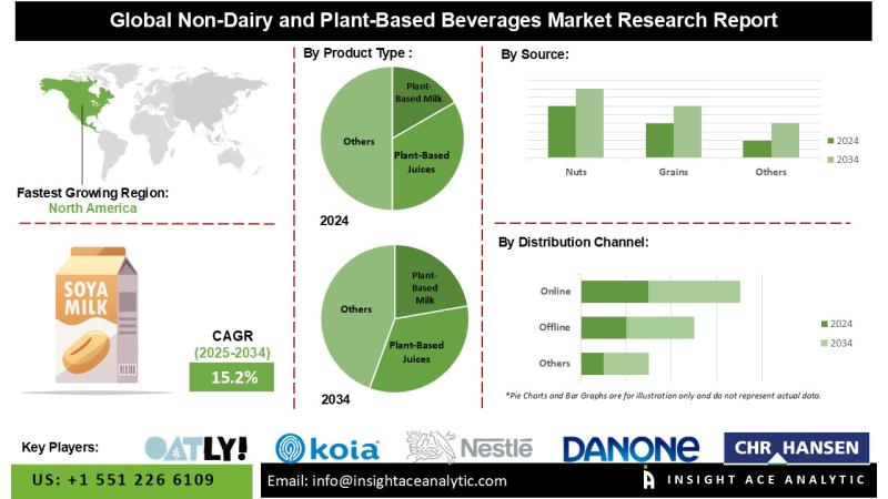 InsightAce Analytic Pvt. Ltd. announces the release of a market assessment report on the "Non-Dairy and Plant-Based Beverages Market"-, By Product Type (Plant-Based Milk, Plant-Based Juices, RTD Tea & Coffee, Others), By Source (Nuts, Grains, Legumes, Fruits & Vegetables, Others), By Distribution Channel (Online, Offline), and Global Forecasts, 2024-2034 And Segment Revenue and Forecast To 2034."