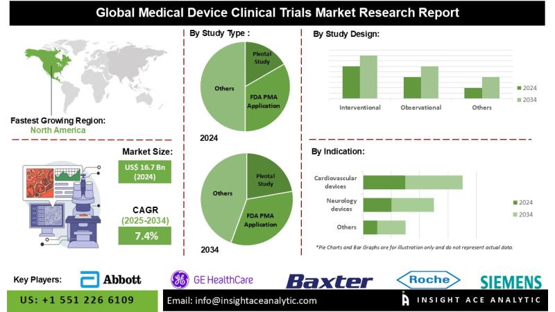 InsightAce Analytic Pvt. Ltd. announces the release of a market assessment report on the " Medical Device Clinical Trials Market - (By Study Type (Feasibility and Pilot Study, Pivotal Study, FDA PMA Application, Post-Approval Study), By Study Design Interventional, Observational, Expanded Access), By Indication (Cardiovascular devices, Orthopedic devices, Neurology devices, Diagnostic imaging, Anesthesia and Respiratory devices, Others)), Trends, Industry Competition Analysis, Revenue and Forecast To 2034."