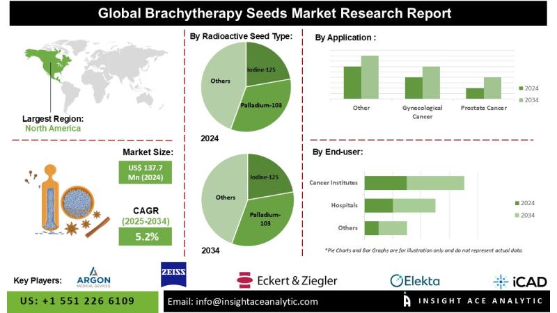 InsightAce Analytic Pvt. Ltd. announces the release of a market assessment report on the " Brachytherapy Seeds Imaging Market - (By Radioactive Seed Type (Iodine-125, Palladium-103, Cesium-131, Others), By Technique (HDR Brachytherapy, LDR Brachytherapy), By Application (Gynecological Cancer, Prostate Cancer, Breast Cancer, Brain Cancer, Others), By End-user (Hospitals, Cancer Institutes, Others)), Trends, Industry Competition Analysis, Revenue and Forecast To 2034."