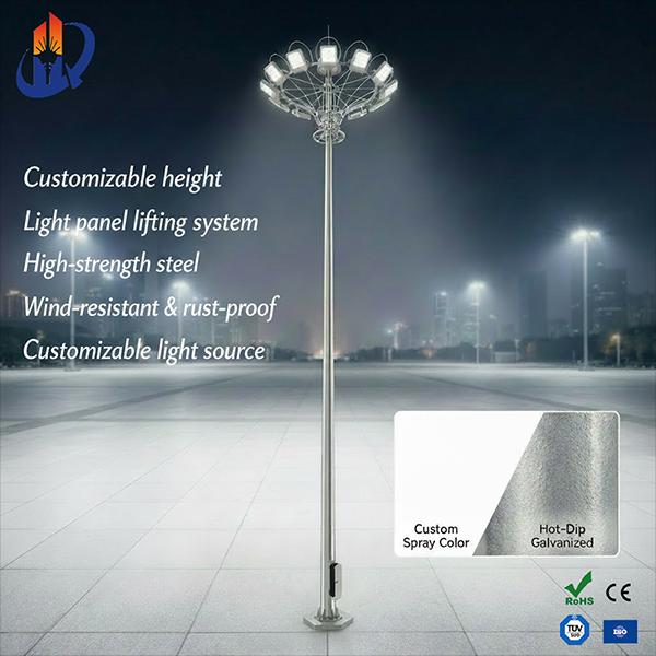 High mast lighting plays a vital role in modern urban illumination systems and is widely used in large-area environments such as city squares, ports, highway interchanges, airports, and large stadiums. Its design and manufacturing involve multiple key aspects, including material selection, structural engineering, lighting configuration, and maintenance systems, making it a highly integrated engineering solution.