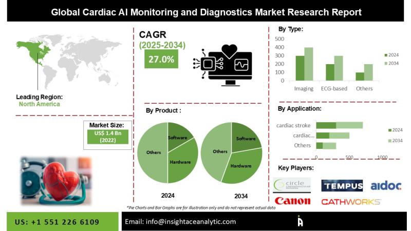 InsightAce Analytic Pvt. Ltd. announces the release of the market assessment report on "Global Cardiac AI Monitoring and Diagnostics Market Size, Share & Trends Analysis Report By Product (Software and Hardware), By Type (Imaging, ECG-based, Cardiac Monitoring, and Others), By Application (Cardiac Arrhythmias, Cardiac Stroke, Ischemic Heart Disease/CAD, and Others), By End Users (Hospitals, Diagnostic Centers, and Other End Users) Market Outlook And Industry Analysis 2034"