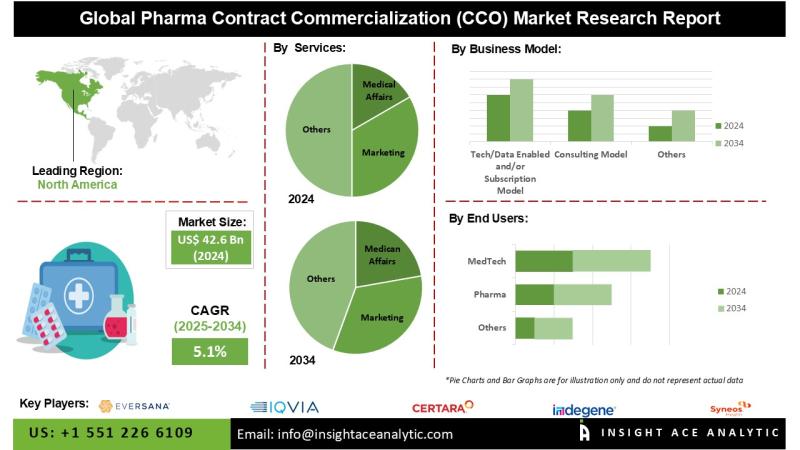 InsightAce Analytic Pvt. Ltd. announces the release of a market assessment report on the "Global Pharma Contract Commercialization (CCO) Market Size, Share & Trends Analysis Report By services (Strategic Consulting, Market Access (Including RWE and HEOR), Pricing & Reimbursement, Medical Affairs, Regulatory & Compliance ), business model (Tech/Data Enabled and/or Subscription Model and Consulting Model) and end user (Pharma, MedTech, Healthcare Providers, Payers ), Region, Market Outlook And Industry…