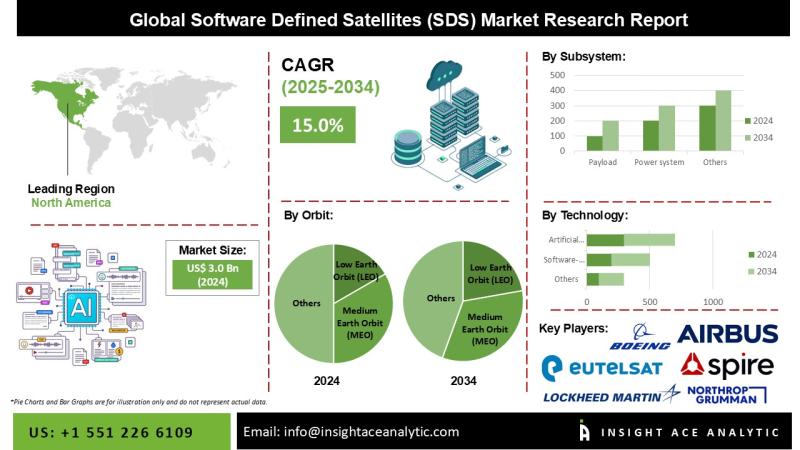 InsightAce Analytic Pvt. Ltd. announces the release of a market assessment report on the "Global Software Defined Satellites (SDS) Market Size, Share & Trends Analysis Report By Orbit (Low Earth Orbit (LEO), Medium Earth Orbit (MEO) and Geostationary Orbit (GEO)), By Subsystem (Payload, Propulsion System), By Mass (small software defines satellites, medium software defines satellites, Large software defines satellite and Heavy software defines satellites), By Technology, By End-use, Region, Market…