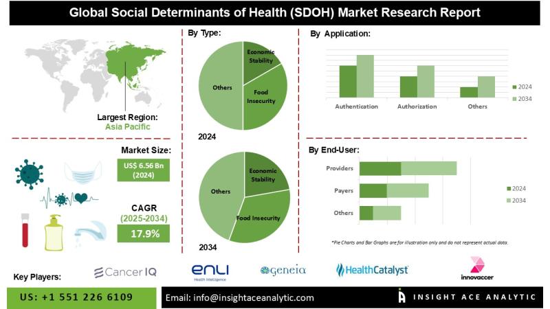 InsightAce Analytic Pvt. Ltd. announces the release of a market assessment report on the "Global Social Determinants of the Health Market - (By Type (Economic Stability, Food Insecurity, Social Context, Environment, Education, Healthcare Systems), Application (Authentication, Authorization, Person-matching, Consent Management, Privacy), End-User (Payers, Providers)), Trends, Industry Competition Analysis, Revenue and Forecast To 2034."
