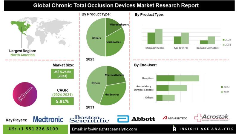 InsightAce Analytic Pvt. Ltd. announces the release of a market assessment report on the "Global Chronic Total Occlusion Devices Market - (By Product Type (Microcatheters, Guidewires, Crossing Devices, Re-Entry Devices, Others), By End-Use (Hospitals & Diagnostic Center, Ambulatory Care Centers (ACC), Others)), Trends, Industry Competition Analysis, Revenue and Forecast To 2031."