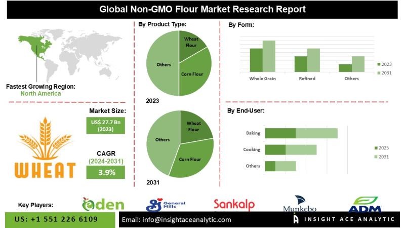 InsightAce Analytic Pvt. Ltd. Announces the release of a market assessment report on the "Non-GMO Flour Market"-, By Product Type (Wheat Flour, Corn Flour, Rice Flour, Almond Flour), By Distribution Channel (Online Retail, Supermarkets, Health Food Stores, Wholesale), By End Use (Baking, Cooking, Brewing, Snacking), By Form (Whole Grain, Refined, Coarse), and Global Forecasts, 2024-2031 And Segment Revenue and Forecast To 2031."