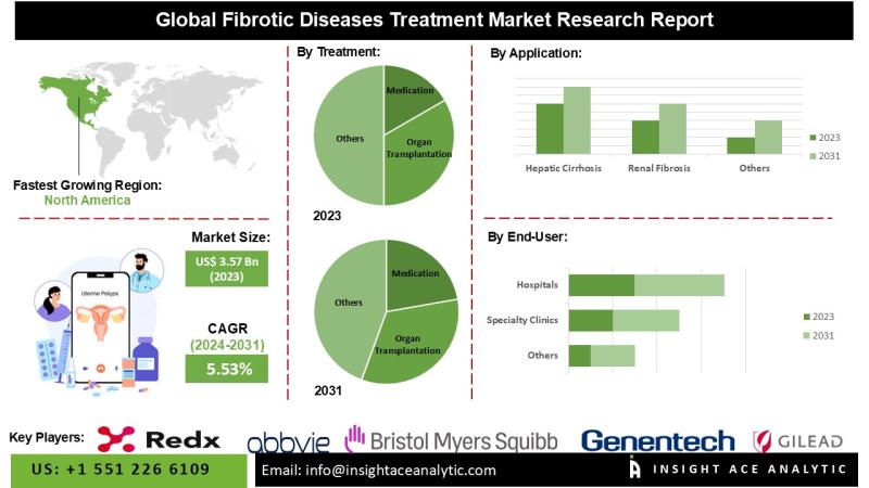 InsightAce Analytic Pvt. Ltd. announces the release of a market assessment report on the " Fibrotic Diseases Treatment Market - (By Treatment (Medication, Organ Transplantation, Oxygen Therapy, and Others), Application (Idiopathic Pulmonary Fibrosis, Hepatic Cirrhosis, Renal Fibrosis, Cutaneous Fibrosis, and Others), End User (Hospitals, Specialty Clinics, Academic and Research Institutes, and Others), Distribution Channel (Hospital Pharmacy, Retail Pharmacy, and Others)), Trends, Industry Competition Analysis, Revenue and Forecast To 2031."