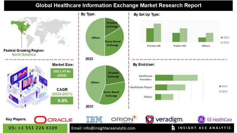 InsightAce Analytic Pvt. Ltd. announces the release of a market assessment report on the "Healthcare Information Exchange Market"-, By Type (Direct Exchange, Query Based Exchange, Consumer Mediated Exchange), By Implementation Model (Hybrid Models, Centralised Models, Federated Models), By Setup (Private HIE, Public HIE), By Solution (Portal-Centric Solution, Messaging- Centric Solution, Platform-Centric Solutions), By Component (Enterprise Master Person Index (EMPI), Healthcare Provider Directory (HPD), Record Locator Service (RLS), Clinical Data Repository),…