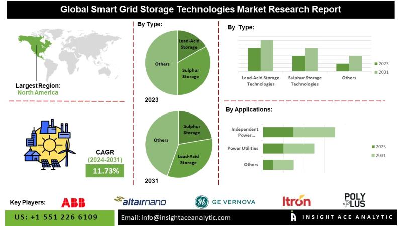 InsightAce Analytic Pvt. Ltd. announces the release of a market assessment report on the "Global Smart Grid Storage Technologies Market Size, Share & Trends Analysis Report By Types (Lead-Acid Storage Technologies, Sulphur Storage Technologies, Lithium-Ion Storage Technologies, Supercapacitors Storage Technologies, Flow Wheel Storage Technologies, Other), By Applications (Power Utilities, Independent Power Producers (IPPs), Other)- Market Outlook And Industry Analysis 2031"