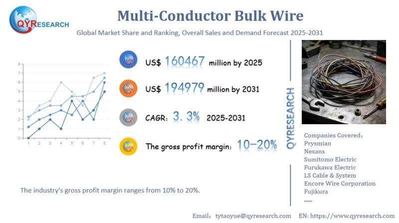 Unlock the Future of the Multi-Conductor Bulk Wire Market: Comprehensive Global Market Report 2025-2031Global leading market research publisher QYResearch published the release of its latest report, "Multi-Conductor Bulk Wire - Global Market Share, Ranking, Sales, and Demand Forecast 2025-2031". This in-depth report provides a complete analysis of the global Multi-Conductor Bulk Wire market, offering critical insights into market size, share, demand, industry development status, and future forecasts. Whether you're a stakeholder, investor, or industry player, this report equips you with the data and strategies needed to stay ahead in a rapidly evolving market.