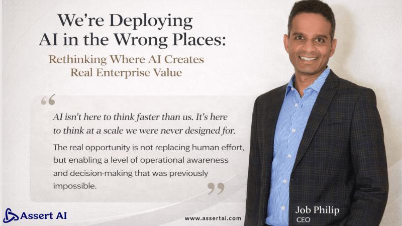 As global enterprises accelerate investments in artificial intelligence, a growing debate is emerging around whether AI is being applied to the right problems. Job Philip, CEO of Assert AI, believes the industry may be missing the bigger picture.